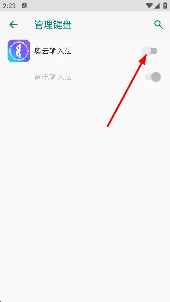 2. 在键盘管理页面,我们会打开输入法的开关。