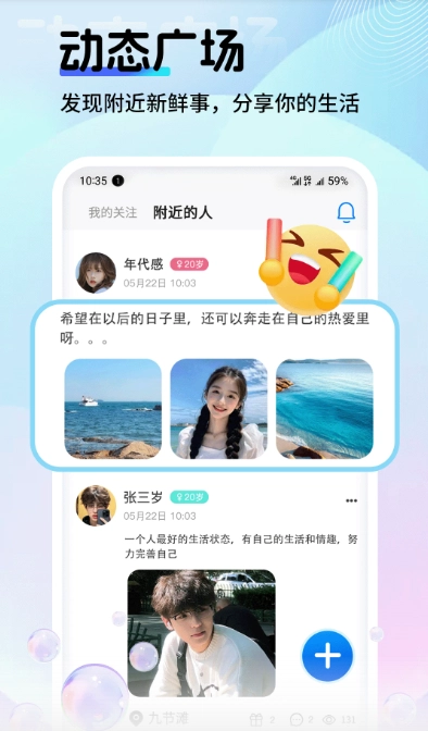 4、动态共享:支持在线发布个人日常生活的动态信息,能够以文字、视频的形式展现生活。