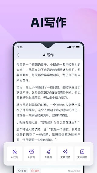 1、功能丰富且全面:包含写作、聊天、图片处理、文字提取等大量功能,一款应用就能满足多样需求。