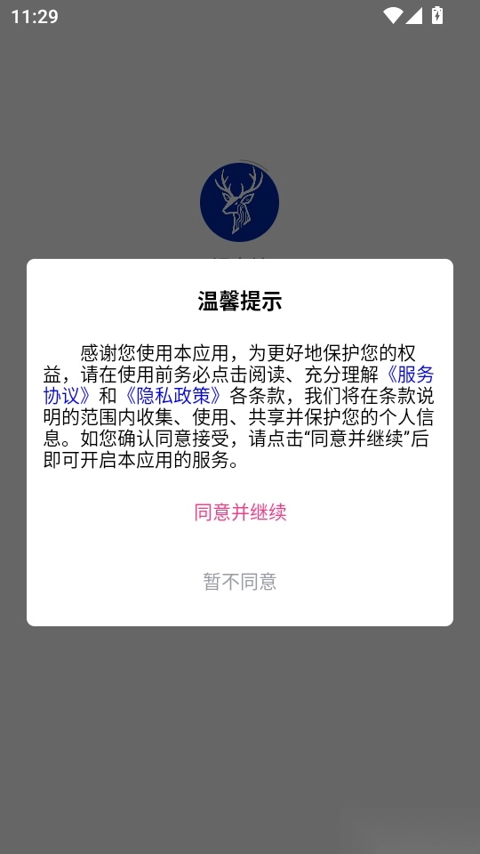 1. 第一步,打开软件,阅读完“温馨提示”后,点击“同意并继续”按钮进入。