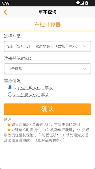 2. 点击“车检计算”,即可查询审车相关信息。