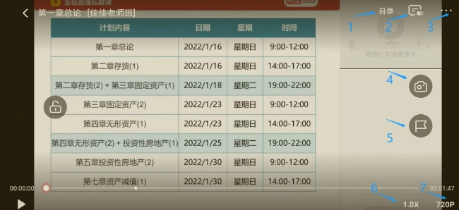 4. 在上课界面的右侧,你可以进行以下操作:截图以保存重点内容,或者点击小红旗进行标记。