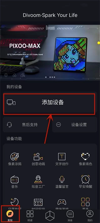5、可与Divoom智能音箱进行联动,把像素画同步至音箱,达成视觉与听觉的联动成效。