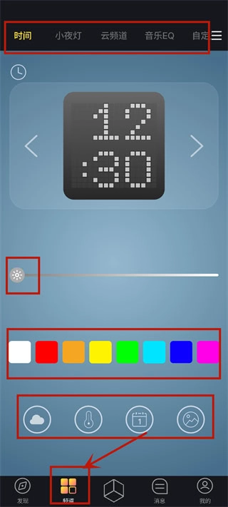 4、完成登录后,即可在频道页面进行时间以及各类显示选项的设置。