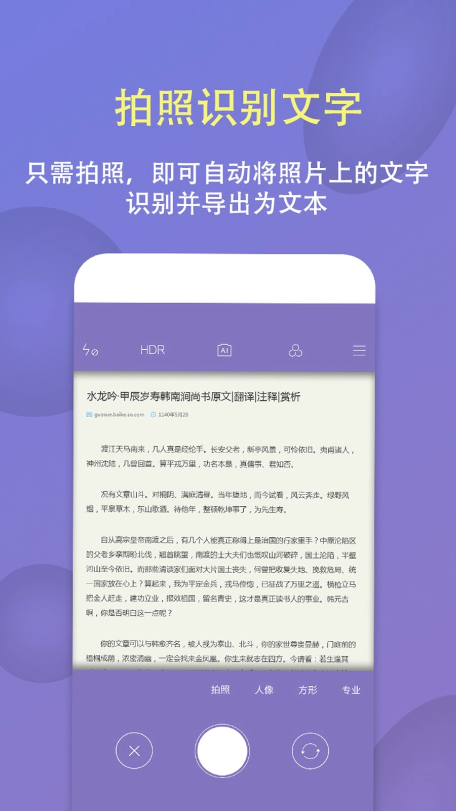 3. 轻点拍照按钮,App 便会自行识别图片里的文字区域。