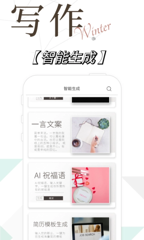 2. 灵感库充裕:海量写作灵感与范文一应俱全,主题、文体全覆盖,充分契合不同用户的创作需求。