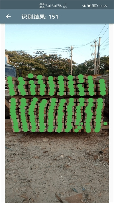 4、请选取照片上框内含有木材的区域,识别完成后会出现绿点,方便您进行审核。