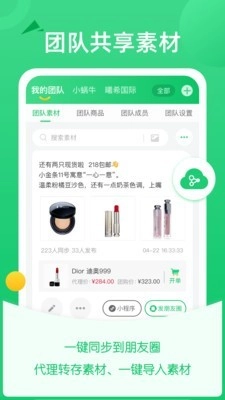 【团队素材云共享】一键转发至朋友圈,一键群发给好友/群。
