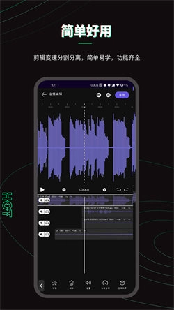 2. 具备音频剪辑、合并、修剪以及变速等功能。