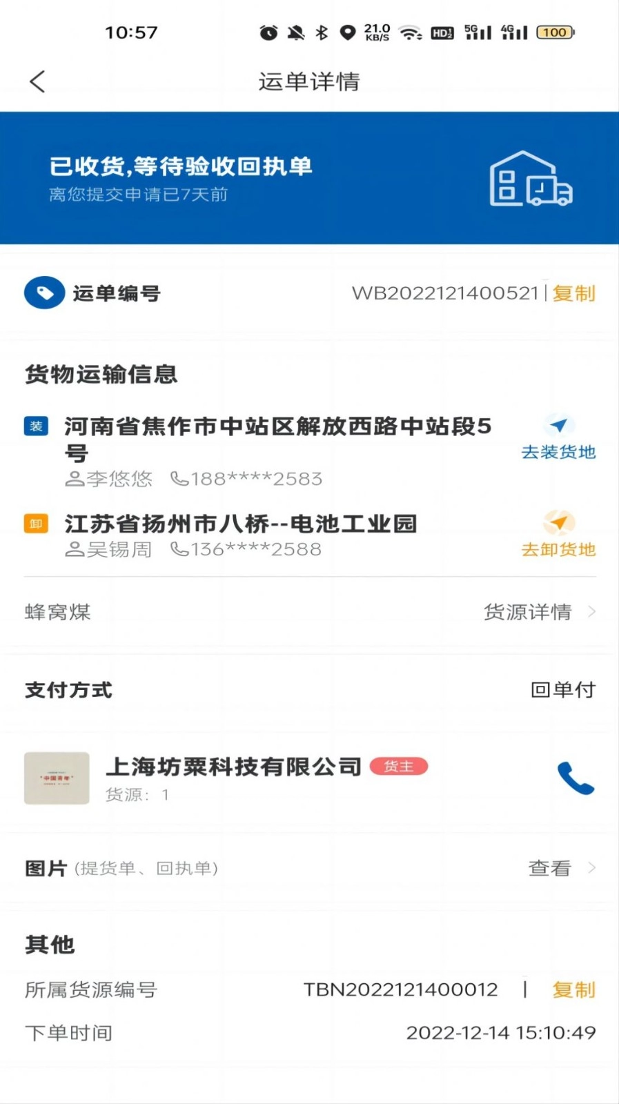 2、通过查看信息,就能得知有货物需要运输,同时还能看到配送地点等相关信息。