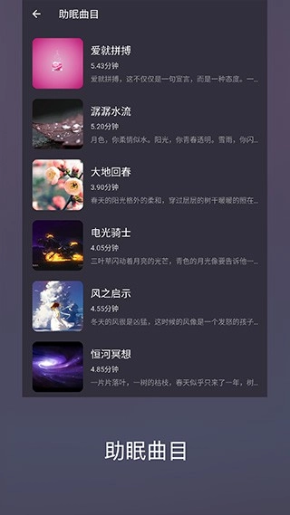 3. 助眠音乐:为用户提供丰富多样的助眠音乐,助力用户舒缓身心,迅速踏入睡眠状态。