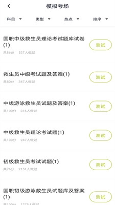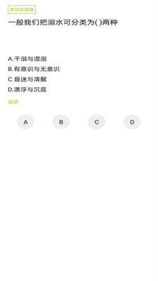 1. 界面上会呈现大量关于接生员的测试题目,供用户学习怎样成为一名合格的救生员。