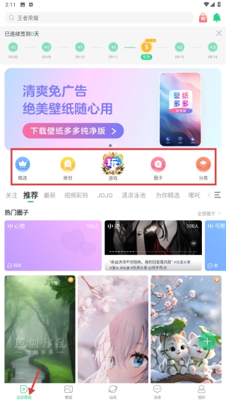 2. 轻点底部的壁纸选项,浏览热门圈子中的动态信息,知悉社区热点。