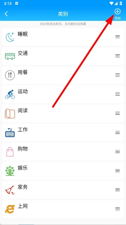 2. 在活动页面,轻点右上角的类别按钮,即可进入类别管理页面。