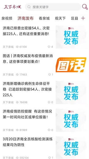 天下泉城是一个专门面向济南市民以及关注济南发展的用户所打造的综合性新闻资讯服务平台。该平台整合了本地新闻、生活服务、政务公告、文化娱乐等多方面的信息,其目的在于为用户及时提供全面且有深度的济南本地资讯,推动城市信息的传播与交流。