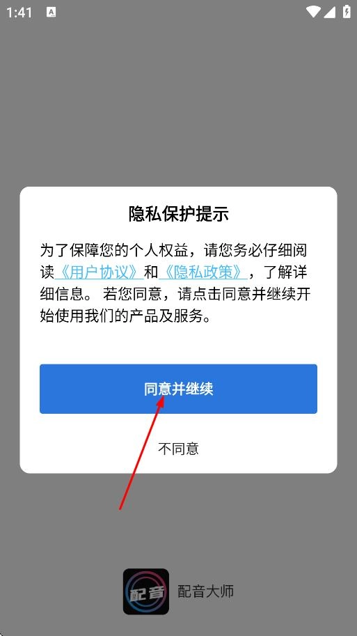 1. 在隐私保护提示的弹窗里,点击“同意并继续”,即可进入应用。
