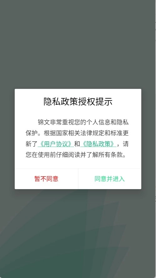 1、第一步,在本站锦文处,仔细查看隐私政策与用户协议,并予以同意。