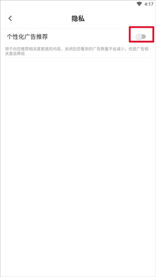 3、在设置界面中,点击“隐私”选项,接着将“个性化广告推荐”功能关闭就可以了。