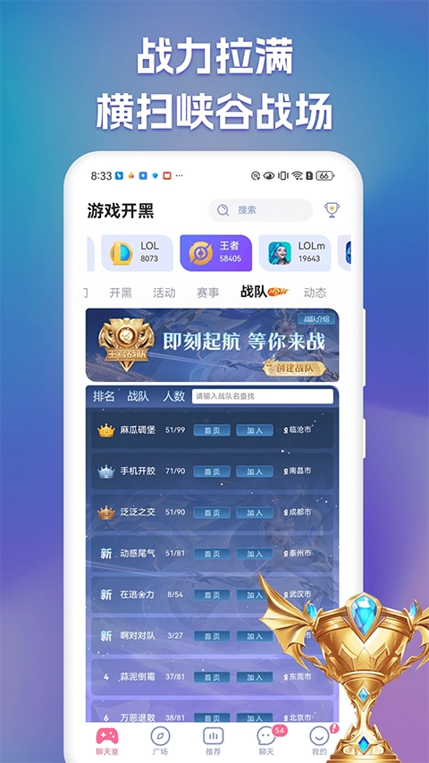 1. 游戏组队开黑:涵盖多款热门主流游戏,助力用户迅速寻觅到适配队友,一同组队畅玩游戏。