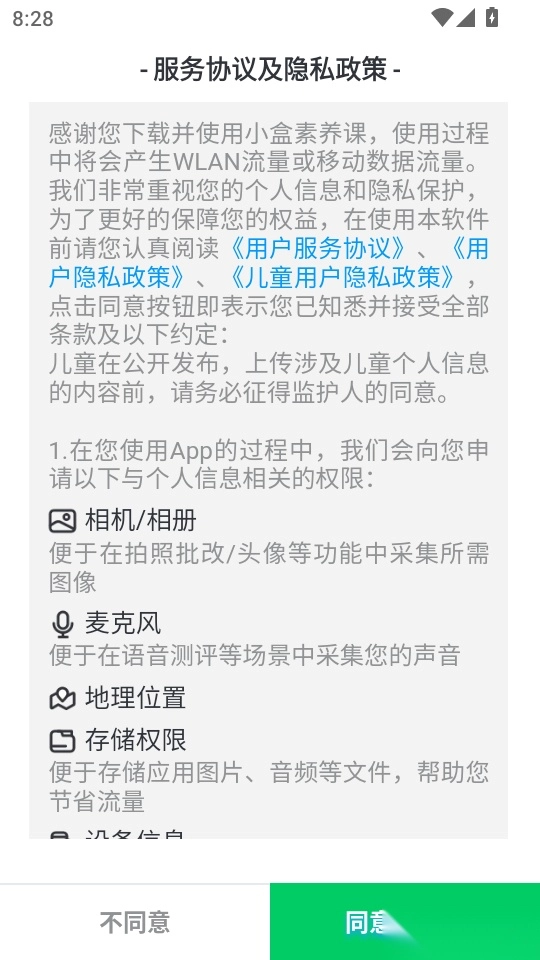 1. 第一步,打开软件阅读应用的服务协议与隐私政策,点击“同意并继续”进入下一步。