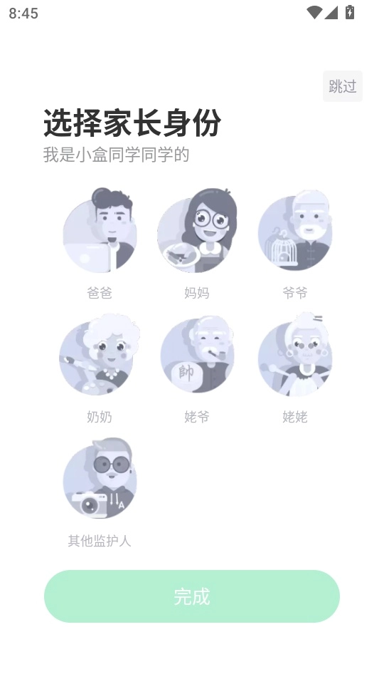 4、用户既能够挑选适宜的家长身份进入软件,也能够选择跳过此步骤。