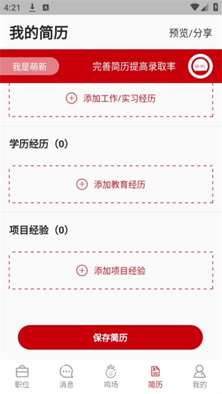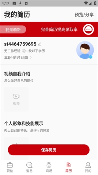 1. 求职者可随时录入个人信息,随即生成微简历。