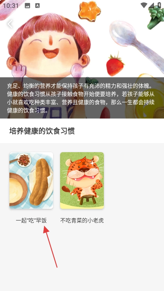 2. 在专题页面中,挑选培养健康饮食习惯这一专题,进而进入该专题的详情页面。