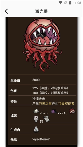 2、玩家能够查看各类生物的不同信息与能力,从基础的蜘蛛、兔子,到boss级生物皆涵盖其中。