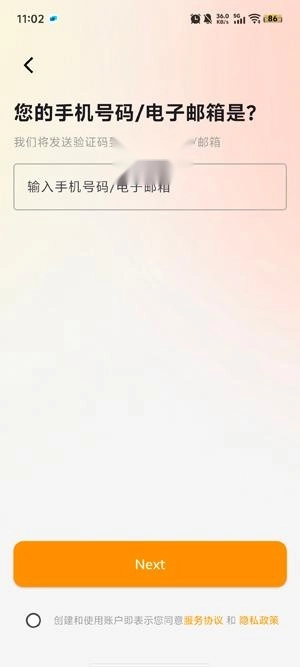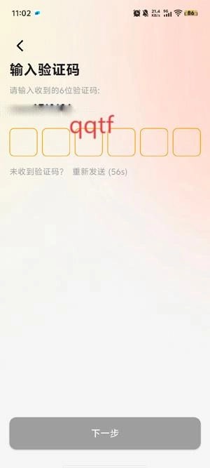 于注册页面输入您的手机号码,接着点击获取验证码。
