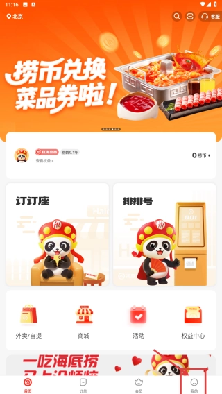 1. 开启海底捞应用程序,轻点底部的“我的”选项,从而进入个人中心页面。