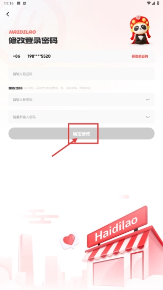 4、于修改登录密码页面,填入相关信息,接着点击“确定修改”按钮,即可完成登录密码的修改操作。