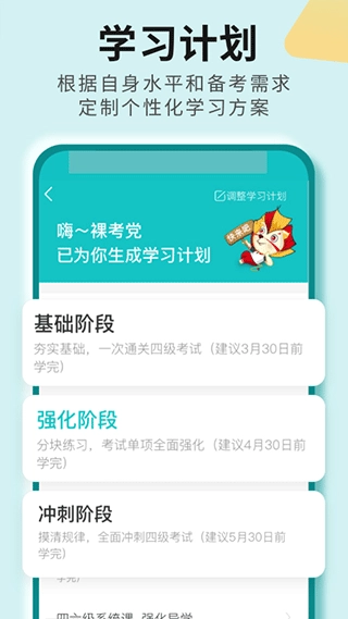 1. 针对性备考规划:严格依据四六级考试大纲及命题规律精心构建,无论是课程内容、练习题,还是词汇模块,都紧密契合考试的实际要求,杜绝无效学习,使备考更具明确方向且高效。