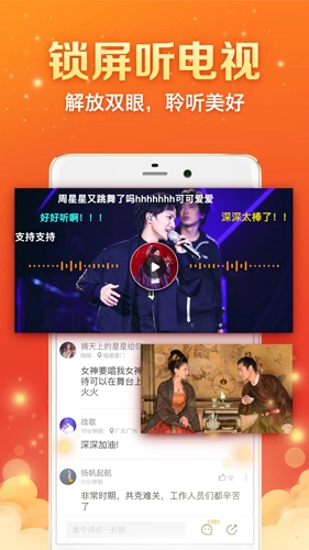 1. 电视实时直播、高清画面同步呈现、弹幕趣味互动、观看同时随心畅聊