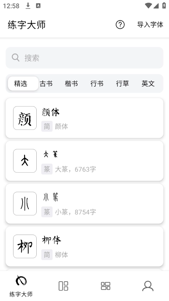 2、能够搜索各类字帖,各种字格皆能挑选。