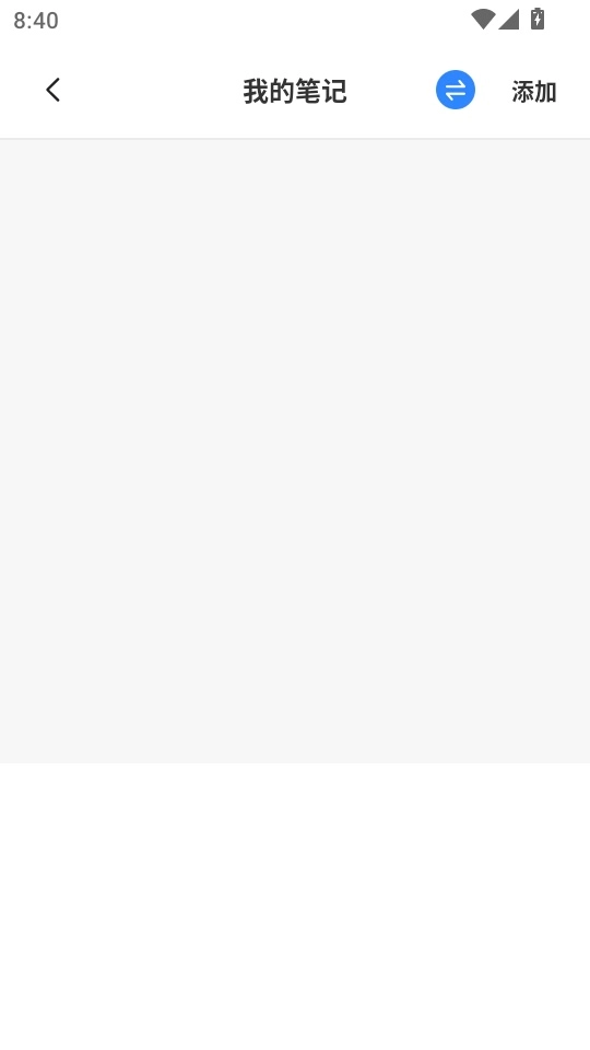 5. 接下来进入“我的笔记”菜单页面,点击右上角的“添加”按钮,从而进入下一步。