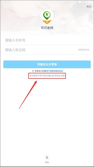 1. 进入软件后,在登录按钮下方能看到一行小字,提示未注册的手机号验证通过后会自动注册。所以,我们仅需通过常规的验证码方式登录就行。