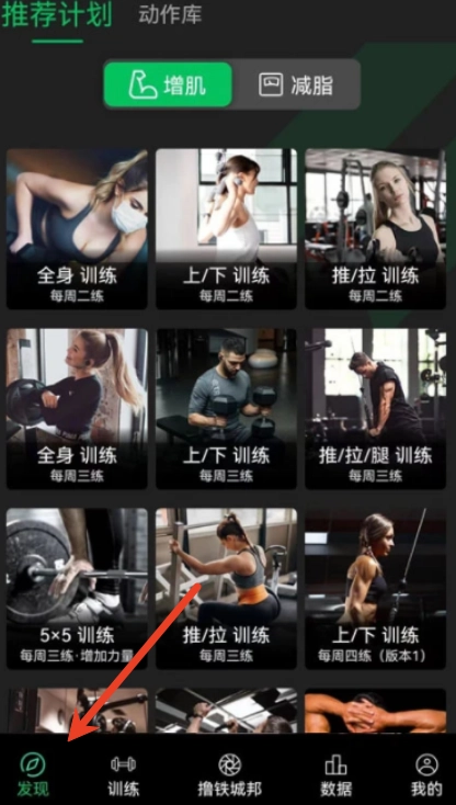 1、用户打开健变日记后,便能在【发现】页面获取诸多运动计划。