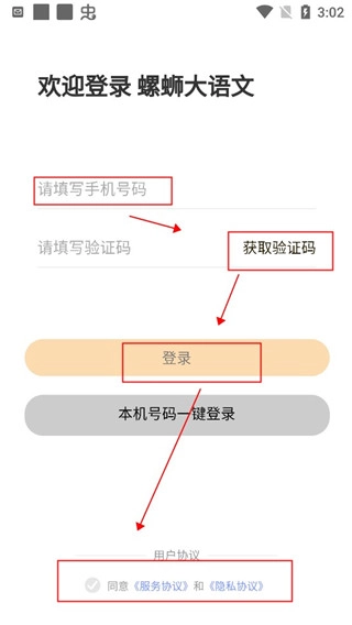 3、接着,你需要输入电话号码来登录软件账号,同时别忘记勾选用户隐私协议。