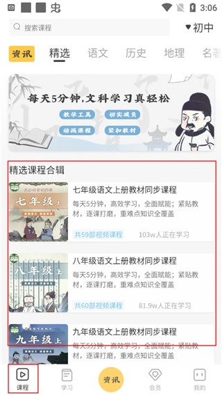 5、当用户进入软件页面,便能在螺蛳大语文中看到各个学科的课程。