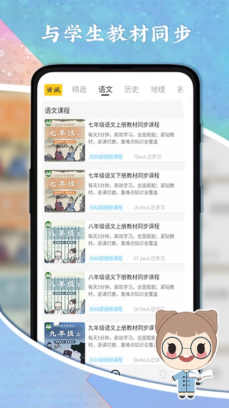 1这是一款专门适用于语文科目的学习工具,涵盖语文、历史、地理等多样化且丰富的课程内容,同时具备科学的学习方式,能够助力孩子更高效地学习,进而提升学习成绩。
