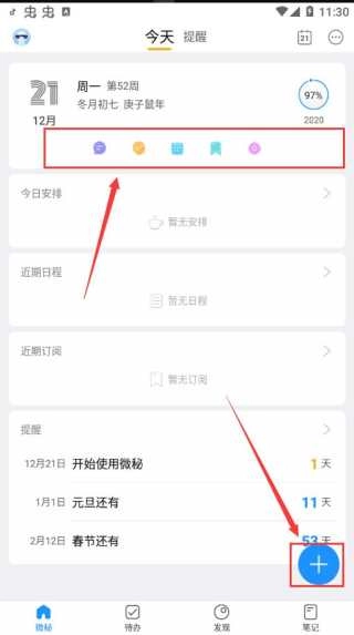 1. 安装微秘并打开,首页顶部设有便捷入口,支持对图标进行自定义。点击右下角的“+”,能够打开添加菜单,而双击则可启动语音助手。