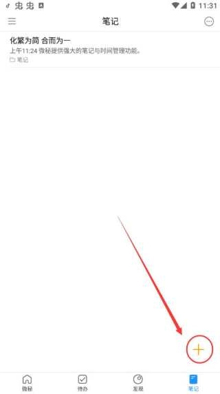 4、打开“笔记”模块,点击右下角的“+”来新建笔记;若长按此按钮,能直接进入语音闪记模式,快速记录灵感。