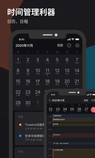 - 具备万年历功能,提供节假日提醒服务,还支持日程订阅,例如体育赛事等日程的订阅。