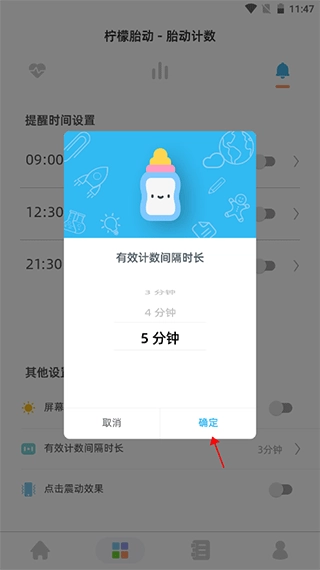 2. 在胎动计数界面,点击【铃铛】图标。