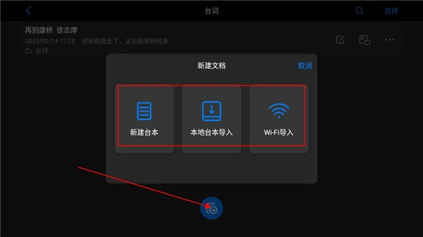 3、打开刚刚新建的文件夹,在此文件夹内,可选择新建台本,或者通过本地、WiFi进行导入。