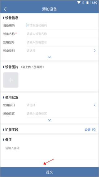 3、录入待添加设备的基础信息,并上传设备图片,之后点击“提交”按钮。