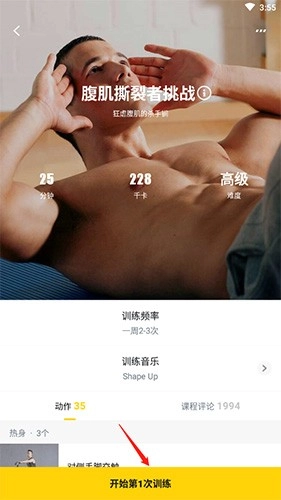 3、轻点“开始第1次训练”按钮,依据课程提示做完当天的训练内容。