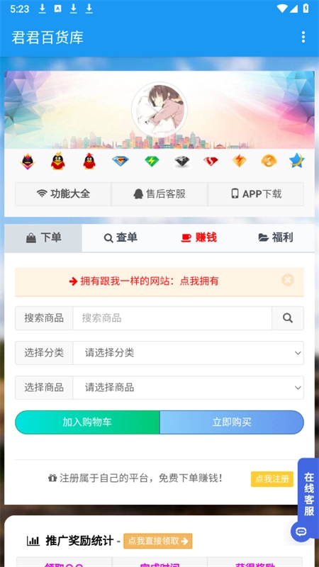 君君百货库是一款集多种实用功能于一身的手机应用,专为那些追求效率与便捷的用户精心打造。在君君百货库中,设有多个模块,其功能覆盖电商推广、任务发布、资源搜索等多个方面,能够满足社交达人、电商运营者以及游戏玩家等不同人群的需求。君君百货库的操作界面简洁清晰,用户极易上手,无需繁琐步骤就能生成专属推广链接。君君百货库的用户只要分享链接,一旦被他人点击访问,便可获得相应奖励,整个激励机制清晰透明。