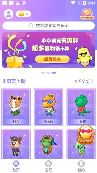 怎样获取宠物 1. 开启软件,进入首页便能浏览各类萌宠。
