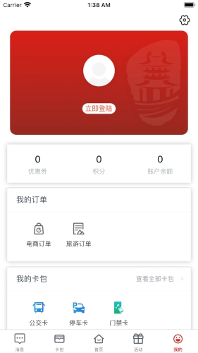 2. 来到首页,点击卡包即可进入。